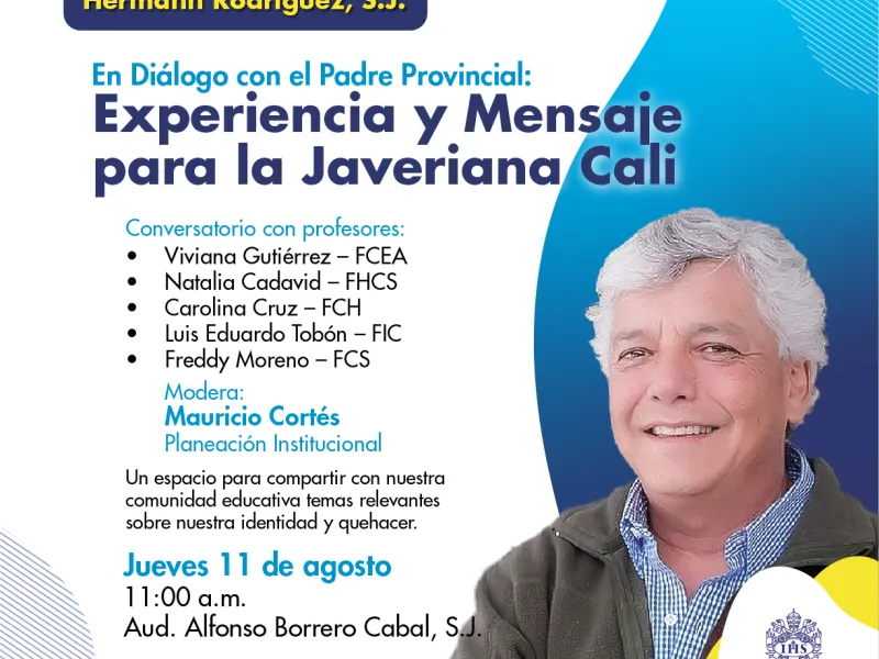 Desde el 9 y hasta el 12 de agosto de 2022, la Javeriana Cali recibirá la visita del P. Hermann Rodríguez Osorio, S.J., Provincial de la Compañía de Jesús en Colombia y Vice Gran Canciller de la Pontificia Universidad Javeriana.